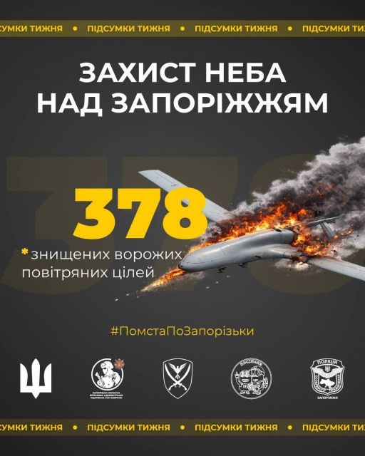 378 ворожих безпілотників знищили підрозділи Сил оборони України над Запоріжжям за тиждень.