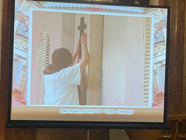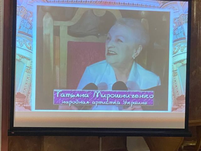 На відео можна було послухати фрагмент інтерв’ю Тетяни Мірошниченко та подивитися уривок з вистави «Дім Бернарди Альби» Ф. Ґ. Лорки, де велика актриса зіграла одну з своїх останніх ролей. Це фактично останній запис. Роль Бернарди Тетяна Мірошниченко грала до 1998 року, виставу поновили у 2009-у, але, на жаль, актриси згодом не стало.