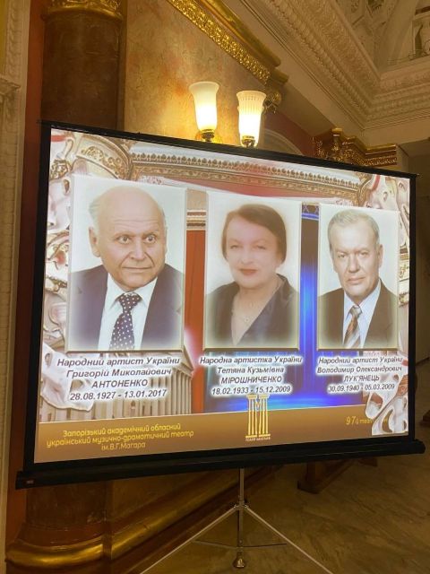 Спогадами про видатних акторів поділилися колишня багаторічна заступниця директора Валентина Горб, заслужена артистка України Світлана Ващенко і народна артистка України Ніна Шинкарук. А на екрані можна було побачити фотодобірки та архівні відео з вистав, у яких грали Григорій Антоненко, Тетяна Мірошниченко і Володимир Лук’янець.