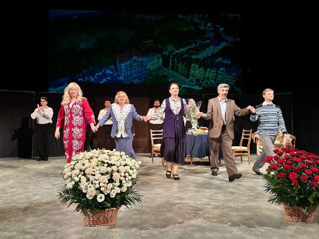 Робота над виставою тривала трохи більше місяця. У ній зібраний, як на мене, зірковий склад: народна артистка України Оксана Туріянська (Антоніна Войтихівна), заслужена артистка України Алла Анзіна (Павлівна), артисти Олег Котеньов (Жора), Вікторія Середа (Маргарита), Євген Биковченко (Артур), Михайло Ромашкан (російський офіцер), Павло Богачов (Шуфр), Армен Гаспарян (Захід), Богдан Кумунджиєв (Сречко), Марко Первухін (Салбон).