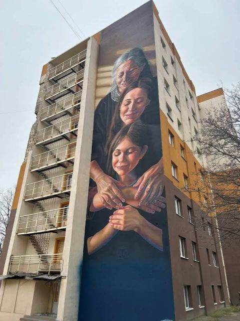 "Мурал символізує нерозривний зв’язок поколінь: турботу, тепло і любов, що передаються від бабусі — до матері, від матері — до дитини.